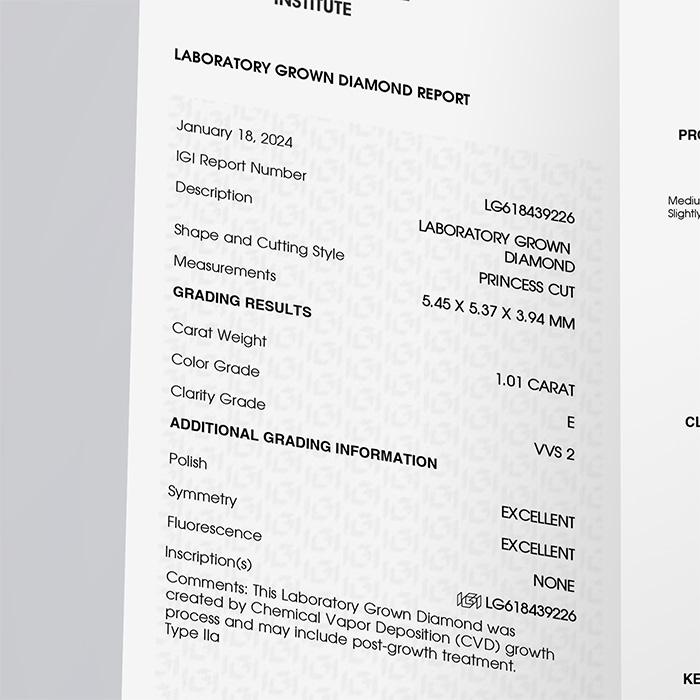 While lab-grown diamonds are visually identical to their natural counterparts, not all diamonds are created equal. This is why certification is critical. An IGI grading report provides an objective, third-party evaluation of the diamond’s quality.